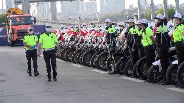 Murat KORKMAZ-Halil YILMAZ/İSTANBUL,(DHA)-15 Temmuz Şehitler Köprüsü’nün yanında bulunan Trafik Denetleme Şube Müdürlüğü polisleri, 19 Mayıs 1919 Gençlik ve Spor Bayramı için 19.19’da İstiklal Marşı’nı okudu.