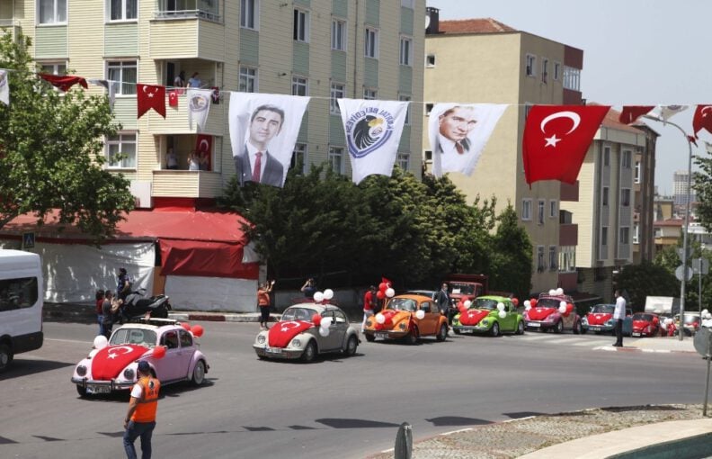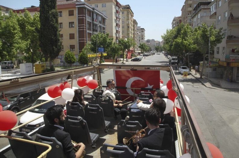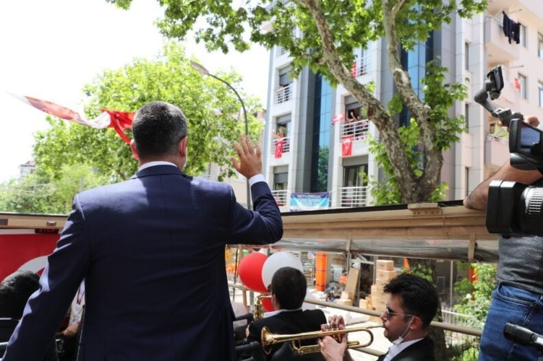 Kartal’da 19 Mayıs Atatürk’ü Anma Gençlik ve Spor Bayramı coşkusu sokaklara taştı. Türk bayrağı ve kırmızı beyaz balonlarla süslenen otomobiller ilçenin sokaklarını turladı. Üstü açık otobüste bando takımının seslendirdiği marşlar sokaklarda yankılandı. Evlerinde kalan vatandaşlar ise pencerelerine çıkarak ellerinde Türk bayraklarıyla marşlara eşlik etti. Konvoya katılan Başkan Gökhan Yüksel de halkı selamlayarak bayram coşkusuna ortak oldu.