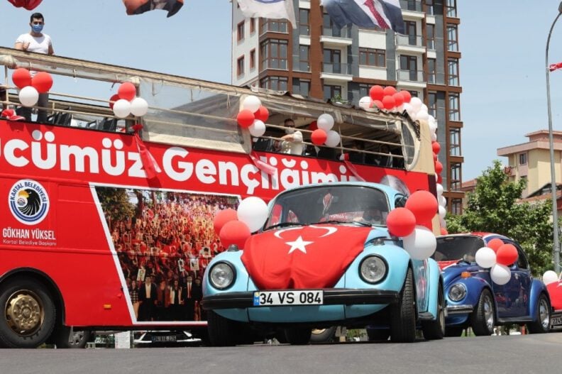 Kartal’da 19 Mayıs Atatürk’ü Anma Gençlik ve Spor Bayramı, coşkulu bir etkinlikle kutlandı. Üstü açık otobüs ve bando takımı, vosvos ve motor konvoyları Kartal’ın sokaklarını turladı. Otobüste bulunan bando takımı, 19 Mayıs’a özel konser verdi. Evlerinin balkon ve camlarını Atatürk posterleri ve Türk bayrakları ile donatan vatandaşlar da çalan marşlara hep bir ağızdan eşlik etti. Türk bayrakları ve kırmızı beyaz balonlarla süslenen araçların oluşturduğu konvoy renkli görüntüler oluşturdu.