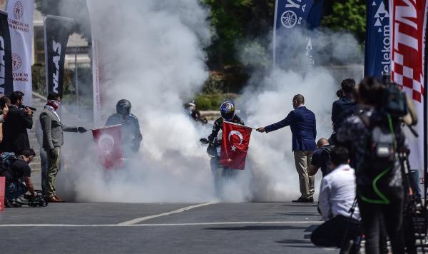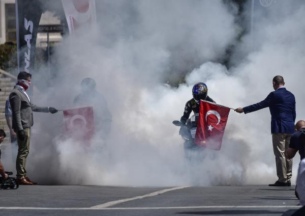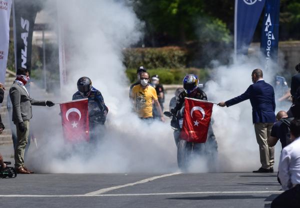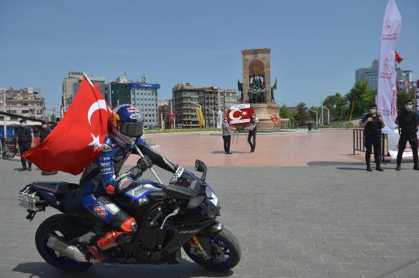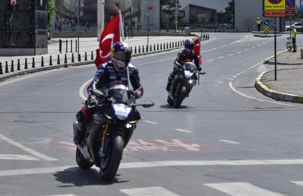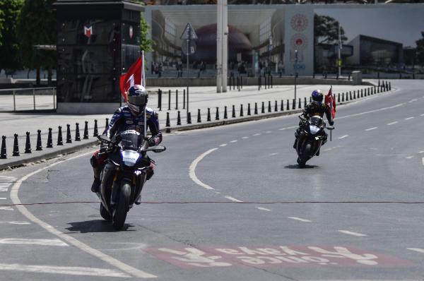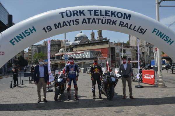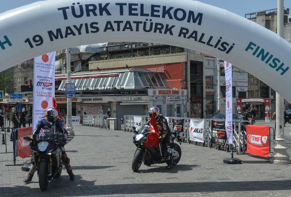 Semih ÇALIŞKAN – Güven USTA / İSTANBUL,(DHA) – 19 Mayıs Atatürk’ü Anma Gençlik ve Spor Bayramı’nda İstanbul’da Atatürk Rallisi düzenlendi. Rallide dünya şampiyonu sporcu ve AK Parti Sakarya Milletvekili Kenan Sofuoğlu ile Dünya Superbike şampiyon pilotu Toprak Razgatlıoğlu, 24 kilometrelik parkurda Dolmabahçe Sarayı önünden start alıp Taksim Meydanı’ndaki finişe ellerinde Türk Bayrakları ile birlikte geldiler. Kenan Sofuoğlu ile Toprak Razgatlıoğlu daha sonra Taksim Atatürk Anıtı’na çelenk bıraktı.