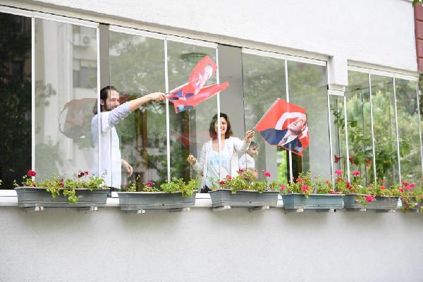 Balkonlarda coşkuyla marşlara eşlik eden Karademir ailesi de Beşiktaş Belediyesine teşekkür etti. Gülcihan Karademir, “Çok mutluyuz. Çok gururluyuz. Tüylerimiz diken diken oluyor. Pandemi sürecindeyiz. Evlerdeyiz. Ama yine de belediyemiz bizleri yalnız bırakmadı. Bizler için onur verici. Atamızın ruhu şad olsun” dedi.