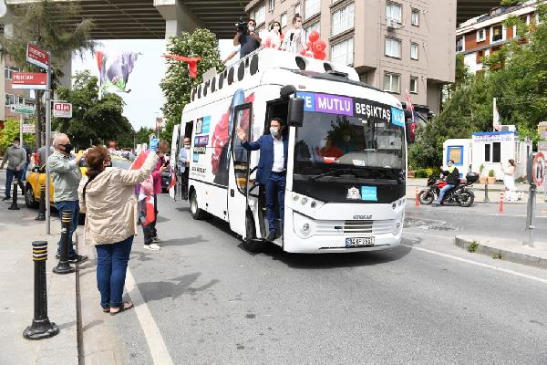 Mobil korteje katılan ve Beşiktaş sakinlerinin bayramını kutlayan Beşiktaş Belediye Başkanı Rıza Akpolat, “Bugün Beşiktaş’ın doğum günü. Evlerinde kalan, dışarıya çıkamayan bugün bu sevinci paylaşamayan milyonlar adına bugün sokaktayız. Her yıl düzenlediğimiz Mobil Kortejimizi düzenledik. Tabii Beşiktaş için çok özel bir gün yaşıyoruz. Doğum günü dedim çünkü, Gazi Mustafa Kemal Atatürk Samsun’a yola çıkarken Beşiktaş’tan yola çıktı. 16 Mayıs sabahı Akaretlerdeki evinden ayrılarak, annesini Beşiktaşlılara emanet ederek yola çıktı. Dolayısıyla Beşiktaş’ta bu bayram her zaman çok özeldir, özel olarak kutlanır. Büyük kalabalıklarla kutlanır. Ama pandemi süreci nedeniyle 101.yılı bu şekilde kutladık. Vatandaşlar evlerinde bizleri bekliyorlar. Evlerinde kalan vatandaşlara moral olsun diye mobil kortejlerimizi yaptık ve Beşiktaş’ın bütün sokaklarını bu coşkuyla dolaşıyoruz” ifadelerini kullandı.