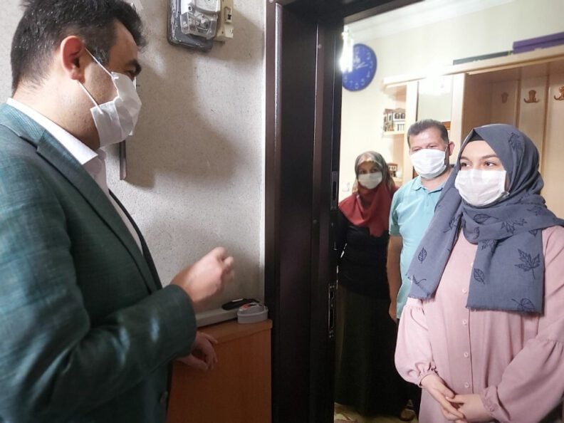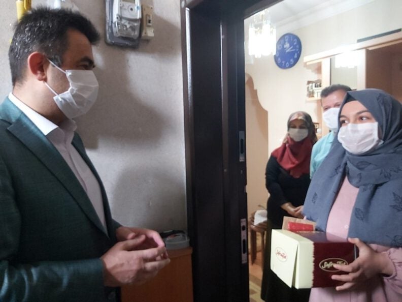 İlçe Milli Eğitim Müdürü Hasan Gümüş beraberinde Şube Müdürü Recep Kabaş, okul idarecileri ve öğretmenlerle birlikte 19 Mayıs Atatürk’ü Anma, Gençlik ve Spor Bayramı etkinlikleri kapsamında korona virüs (Covid-19) tedbirleri nedeniyle evlerinden çıkamayan 19 Mayıs doğumlu gençlerin evine kadar giderek doğum günlerini kutladı.