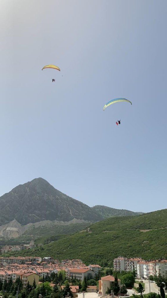Yamaç paraşütçülerinin Karatepe’den, Eğirdir Altınkum plajına rengarenk paraşütlerle süzülmeleri ve şanlı bayrağı Eğirdir semalarında dalgalandırmaları ilgili ve heyecanla izlendi.