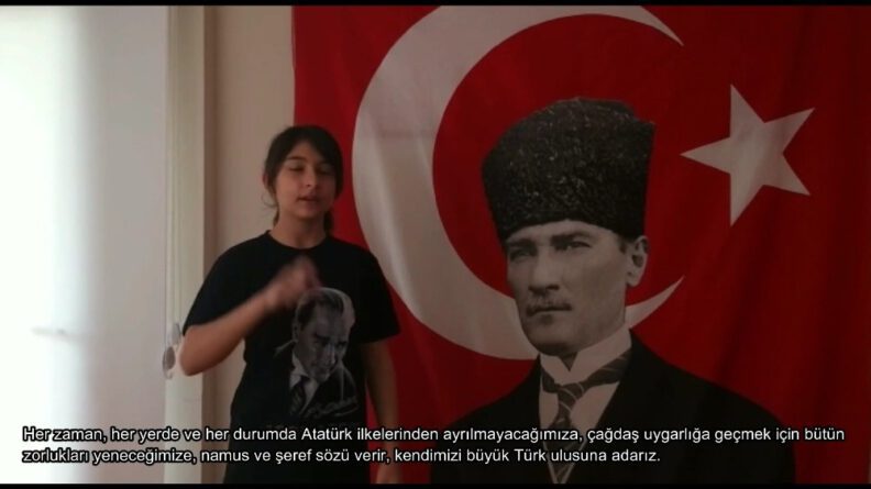 Ulu Önder Mustafa Kemal Atatürk’ün Gençliğe Hitabesi’ni seslendiren idareci ve öğretmenler, kurgu ve montajları kendi imkanlarıyla yaptı. Öte yandan Aliağa Ortaokulu öğrencileri, Gençliği Hitabeyi işaret diline çevirip projeye de yer aldı. Hazırlanan klip, sosyal medyada da beğeni topladı.