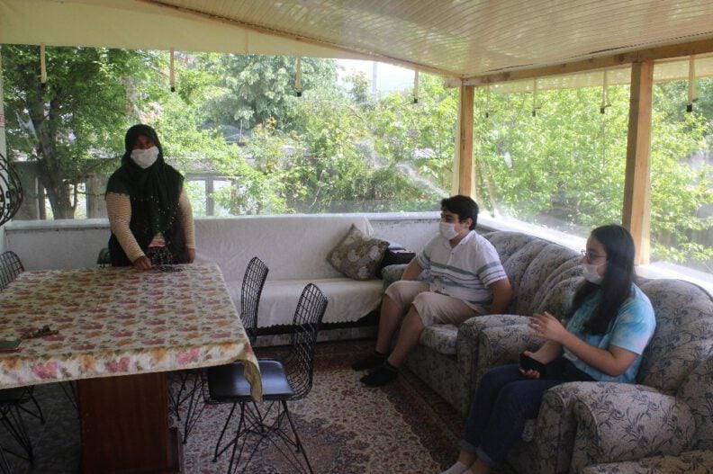 15 yaşındaki Erenay ve 16 yaşındaki İremsu, anneanneleri ile sosyal mesafe kurallarına uyarak özlem giderdi.