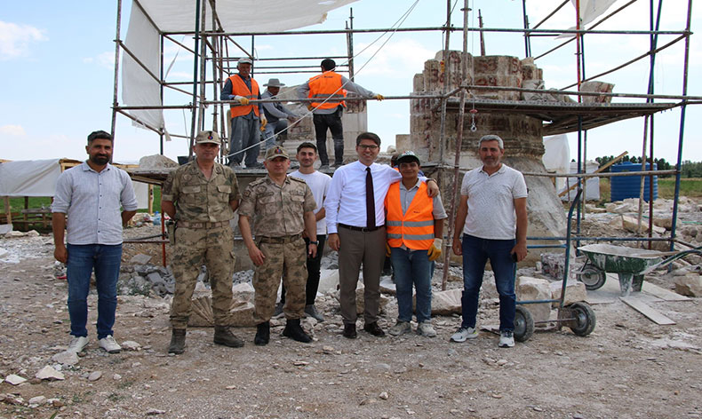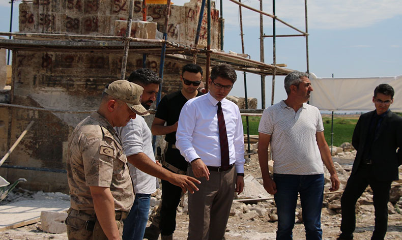 Erciş Kaymakamı Murat Karaloğlu, beraberindeki heyetle çalışmaların devam ettiği Kara Yusuf Paşa Kümbeti’nde incelemelerde bulunarak, çalışmalar hakkında bilgi aldı.