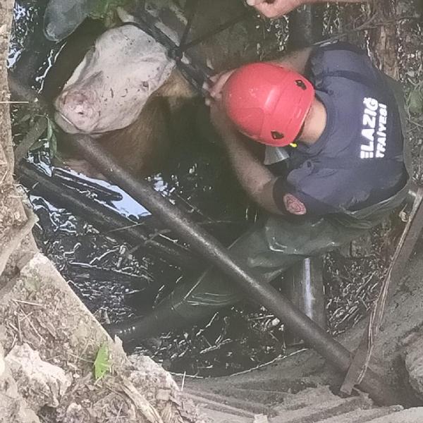 Olay, merkeze bağlı Kızılay Mahallesi’nde arazide meydana geldi. Otlatmaya çıkarılan inek, arazide bulunan yaklaşık 5 metrelik kuyuya düştü. Bunun üzerine ineğin sahibi, itfaiyeyi arayarak yardım istedi. Kısa sürede olay yerine giden ekipler, kuyuya düşen ineği halat yardımıyla yukarı çekti. Yaklaşık 1 saat süren kurtarma çalışması sonrası kuyudan çıkarılan inek, sahibine teslim edildi.