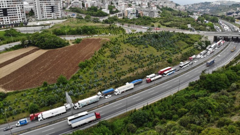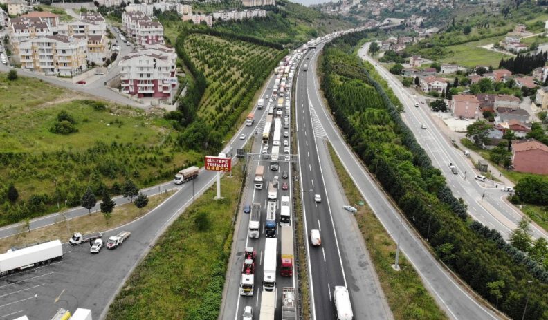 İçişleri Bakanlığının 65 yaş üstü vatandaşlara yönelik açıkladığı seyahat izni sonrasında korona virüsle mücadele süresinde boş kalan Kocaeli TEM Otoyolu geçişinde trafik durma noktasına geldi. Kilometrelerce uzunluktaki araç kuyrukları havadan görüntülendi.
