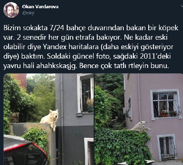 “Bu sokakta oturuyorum ve Rocky insanın hemen dikkatini çekiyor. Günün her saati duvarın üstünde. Gelen geçenleri izliyor. Ona ‘Mahallenin muhtarı’ diyorlar. Ne kadar süredir burada diye merak ettim. İnternette eski sokak görüntülerine baktım. 2011 yılının görüntülerini buldum. Tabii Rocky o zaman daha genç. Ama yine aynı yerinde. Bu fotoğrafı Twitter’da paylaştım. Bu sokak işlek bir sokak. Köpek herkesin dikkatini çekmiş. Herkesin aslında fotoğrafı var. Galeride köpekle fotoğrafları var ama kimse bu kadar ünlü olduğunu bilmiyordu. Twitter’da paylaşınca ve herkes altına fotoğraflarını koyunca insanlar Rocky ile buluşmuş oldu. Yaklaşık 300, 400 insan fotoğraf gönderdi. Hatta yabancılar tweeti kendi dillerine çevirip bu hikayeyi görmüşler. Yabancı Twitter kullanıcıları da ‘bu ne güzel bir hikayeymiş’ diye paylaşımlar yapıyor. Sadece Türkiye’de değil, dünyada da ünlü oldu. İnsan kendini güvende hissediyor. Sonuçta bir bekçimiz var.”