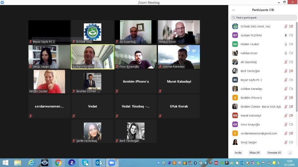 Demirtaş Organize Sanayi Bölgesi İş İnsanları Derneği’nin (DOSABSİAD) “Online Video Konferans” konuğu Avrupa Genç Girişimciler Konfederasyonu (YES) Başkanı Gürkan Yıldırım oldu. DOSABSİAD Başkanı Nilüfer Çevikel, düzenledikleri her video konferansta bilgilendiklerini, Avrupa’daki ve dünyadaki pandemi sonrası yaşanan gelişmeleri, yeni yatırım alanları ve önemli birçok konuda uzmanlardan öğrenme fırsatı bulduklarını söyledi