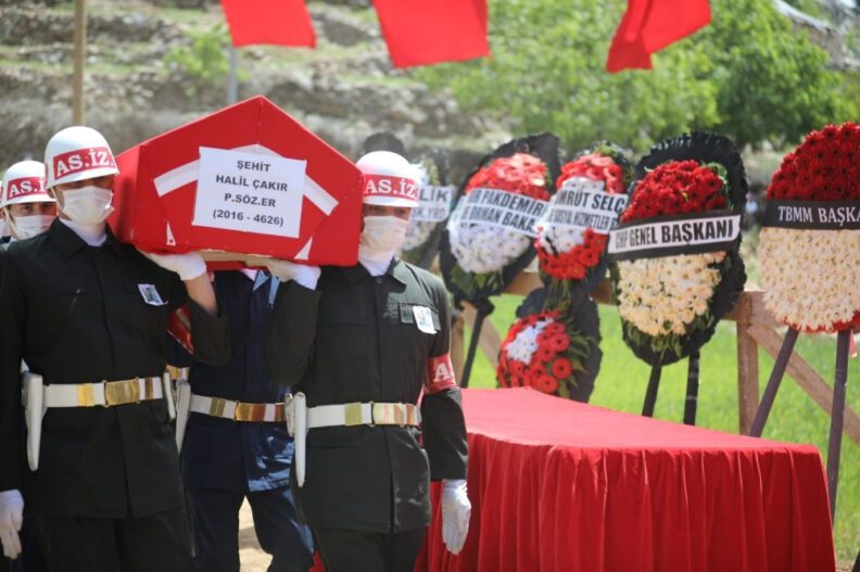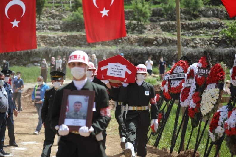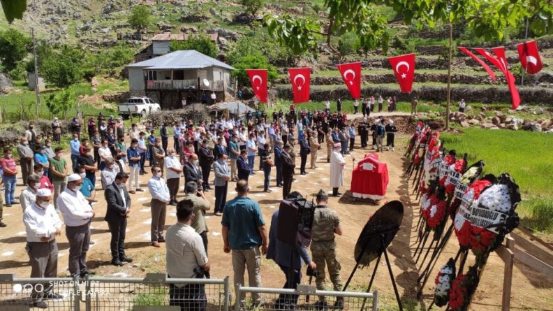 Hakkari’de PKK’lı teröristler ile girdiği çatışmada ağır yaralanan Piyade Sözleşmeli Er Halil Çakır, memleketi Adana’nın Aladağ ilçesinde son yolculuğuna uğurlandı.