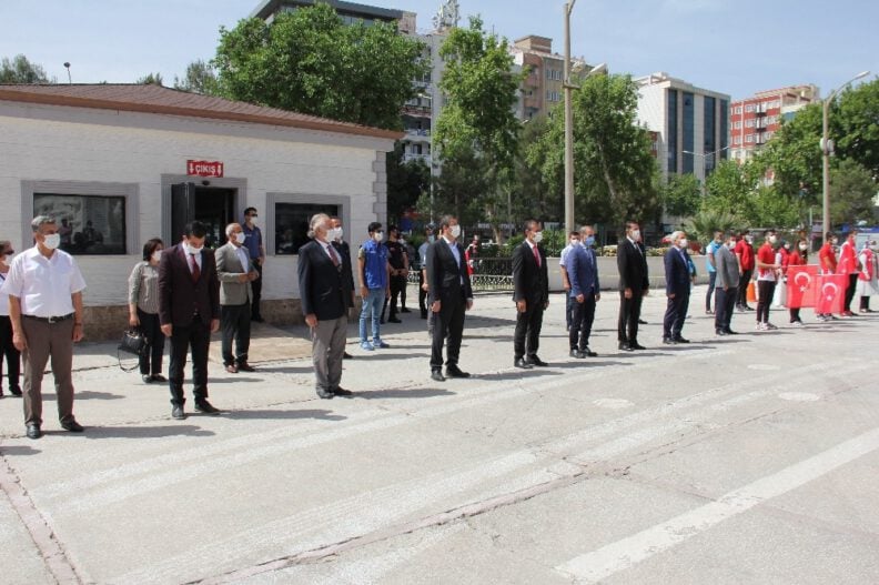 Adıyaman Valiliği önündeki düzenlenen 19 Mayıs Atatürk Anma, Gençlik ve Spor Bayram etkinliği sosyal mesafe kuralına uyularak çelenk bırakıldı. Gençlik ve Spor İl müdürü Fikret Keleş tarafından Atatürk anıtına çelenk bırakıldı.