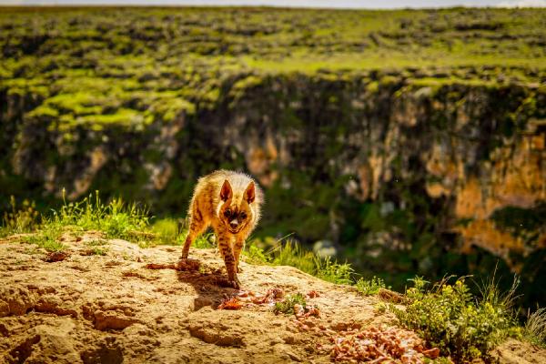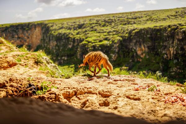 Besni’de doğa fotoğrafçılığı yapan Musa Gürbüz, ilçenin Fırat Havzasında dolaşırken bir mağara girişinde çizgili sırtlan fark etti. Sırtlanı görüntüleyen Musa Gürbüz, “Bölgede sırtlan varlığından bahsedilince arkadaşlarımla dolaşmaya çıktık. Arazide dolaşırken sırtlanı fark ettik. Hayvana hem yem verdik hem de görüntülerini çektik” dedi.