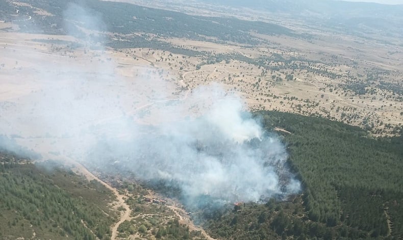 Sandıklı ilçesine bağlı Akharım beldesindeki Orman Bölge Müdürlüğü’nün ağaçlandırma sahasındaki yangına çevre ilçe ve beldelerden de destek ekipleri söndürme çalışmasına katıldı. Çalışmalarda 1 helikopter ile çok sayıda arasöz, iş makineleri ve personel yer alıyor. Yaklaşık 3 hektardan fazla alanda etkili olduğu belirtilen yangına ekiplerin müdahalesi sürüyor.