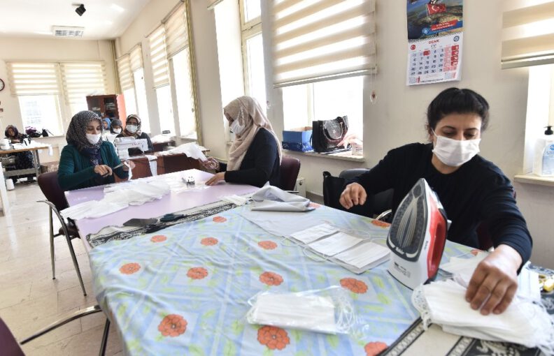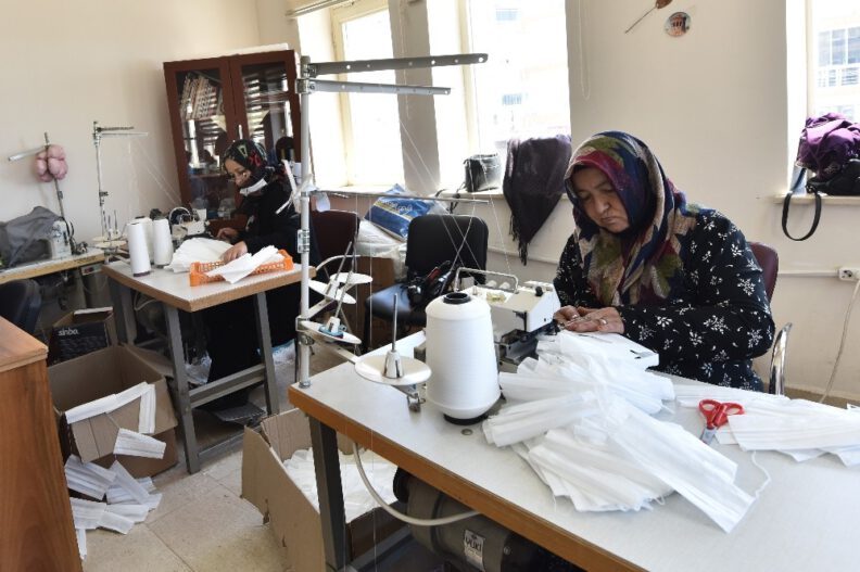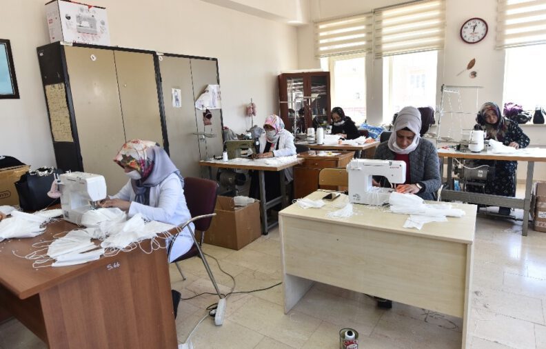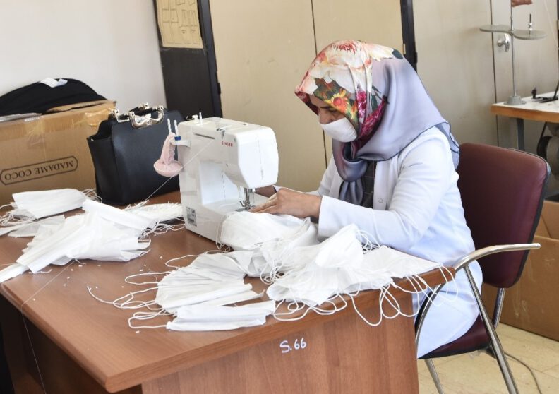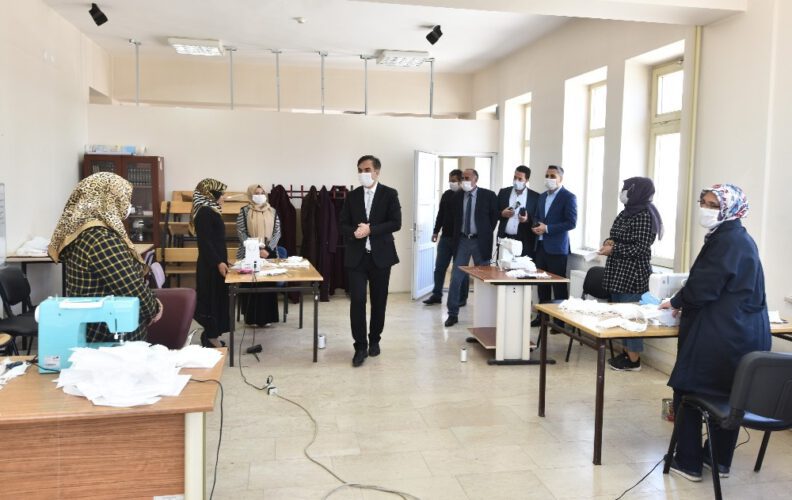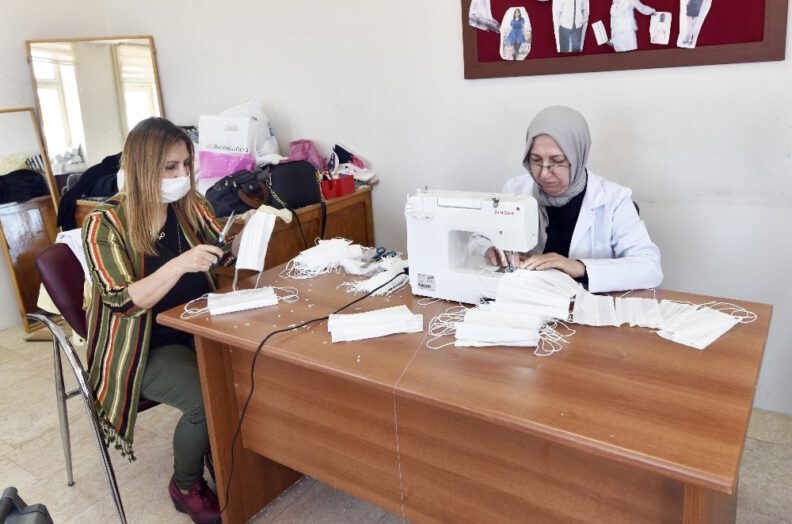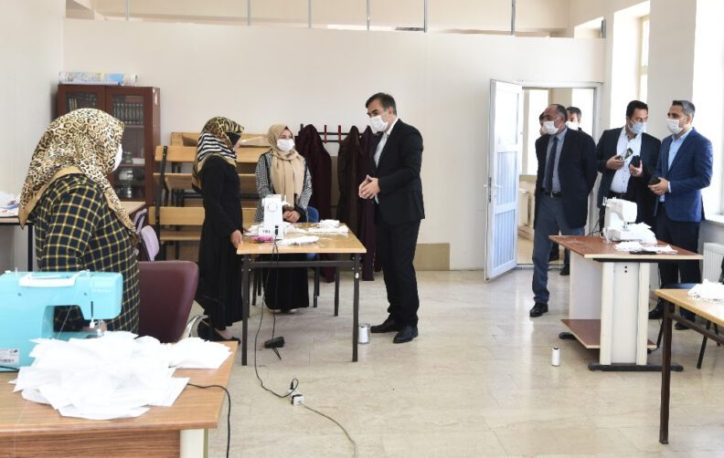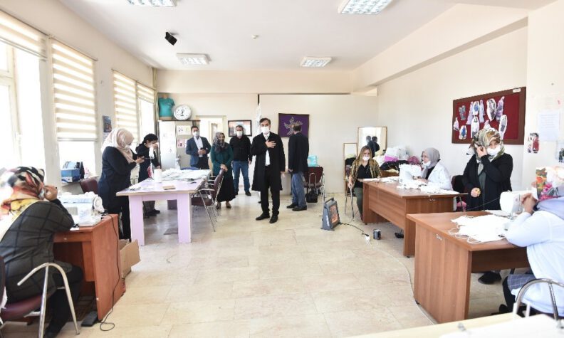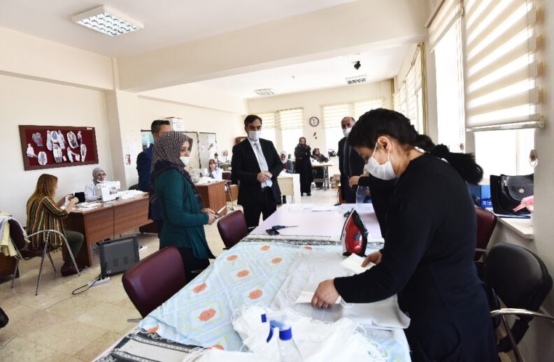 Ahlat Belediyesinin malzeme desteği sunduğu, Ahlat Halk Eğitimi Merkezindeki atölyelerde usta öğreticiler ve gönüllü kadınlar tarafından maske üretimi hızlı bir şekilde devam ediyor. Maske üretim atölyelerini ziyaret eden Ahlat Belediye Başkanı A. Mümtaz Çoban, gönüllü usta öğretici ve kadınlara çalışmalarında kolaylıklar diledi. Özverili çalışmalarından dolayı maske üreten kadınlara ve Halk Eğitimi Merkezi Müdürlüğü yetkililerine teşekkür eden Başkan Çoban, belediye adına üretilen 10 bin adet maskenin esnaf ve vatandaşlara ücretsiz bir şekilde dağıtımının başladığını söyledi. Çoban, “Öncelikle bu korona virüsü belasından Cenab-ı Hak bütün insanlığı muhafaza etsin diye dualarımızla bu Ramazan günü seslenmiş olalım. Çünkü insanlık hakikaten iyi bir imtihandan geçti ve geçiyor. Bu büyük felaketlere de neden oldu. Dev devletler bile bu virüs karşısında ciddi anlamda sıkıntı yaşadılar. Fakat Türkiye Cumhuriyeti Devleti muazzam bir teşkilatlanmayı vatandaşıyla beraber sağladı. Sağlık Bakanlığıyla güvenlik teşkilatlarıyla ve daha ötesinde mahalli idareleriyle, mülki idareleriyle bu teşkilatlanma bize çok olumlu netice de doğurdu. Takriben 50 ülkeye yardım eden bir ülke konumuna geçtik. Bizde üzerimize düşen ne varsa onu yapıyoruz. İlk günden bugüne ilçemizde muazzam tedbirler aldık. Belediye olarak dezenfekte işlemlerinin tamamını ilgili kurumların tamamına biz götürdük ve bunu da tekrar tekrar yaptık. Bizlere maliyeti yüksek olmasına rağmen konuya bu gözle bakmadık, çünkü insan sağlığı her şeyin ötesindeydi. Bugünde buradaki bütün ekibe teşekkür ediyorum. Sadece 10 bin adet belediyemize maske üretimi gerçekleştiriyorlar. Kaymakamlık ve ilgili kurumlara da takriben toplamda 30 bin adet maske üretimine geçildi. Bu üretilen maskelerimizi esnaf ve vatandaşlarımıza ücretsiz dağıtıyoruz. Bu işlemi aralıksız yürütüyoruz. Ben bu vesileyle bu süreçte bize destek sağlayan valiliğimize, kaymakamlığımıza, milli eğitim müdürlüğümüze ve halk eğitimi merkezi yetkililerine ve personellerine ayrı ayrı teşekkür ediyorum. Ama en büyük teşekkürü vatandaşlarımıza ediyorum. Niçin? Çünkü onlarda bu kurallara uymasalardı bizim yaptığımız bütün işler heba olurdu. Hep birlikte koronasız bir hayata doğru koşalım” dedi.