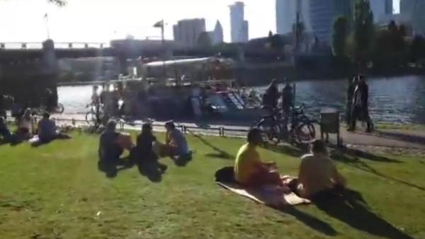 Almanya’nın Frankfurt kentinde pazar tatilini ve güneşli havayı fırsat bilen vatandaşlar, sosyal mesafeyi hiçe saydı, birçok kişi şehrin Main Nehri kıyılarına akın etti. Frankfurt’ta yaşayan Sefa Asılöz’ün dün akşam saatlerinde Main Nehri civarında dolaşırken cep telefonu ile kayıt yaptığı görüntüler, ‘Almanlar koronavirüs önlemlerini unuttu mu?’ sorusunu akıllara getirdi. Pazar tatilini ve güzel havayı fırsat bilen yüzlerce vatandaşın, gruplar halinde nehrin iki kıyısına akın ettiği görüldü.