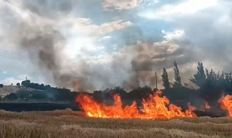Kahramanmaraş Karayolu yeni Sanayi Sitesi üzerinde bulunan ekin tarlasında sebebi bilinmeyen bir nedenle yangın çıktı.