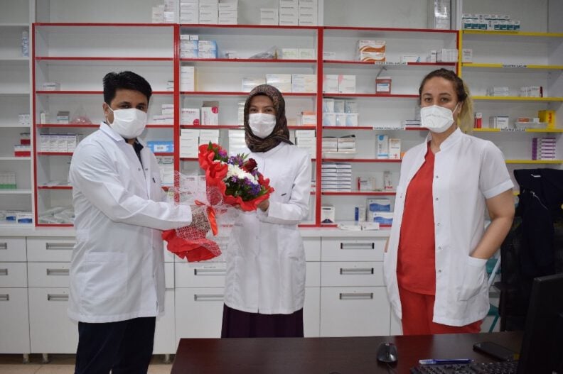 Gaziantep Özel ANKA Hastanesi Başhekimi Dr. Fırat Dalgıçer ve Hemşire Hizmetleri Koordinatörü Ayşe Koç, 14 Mayıs Eczacılar Günü dolayısıyla kurumda görev yapan Eczacı Zehra Didar’ı ziyaret ederek, çiçek takdim etti.