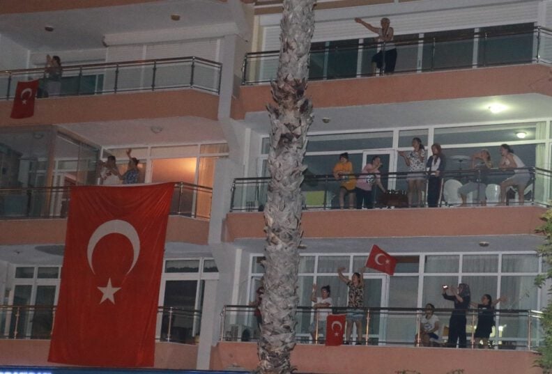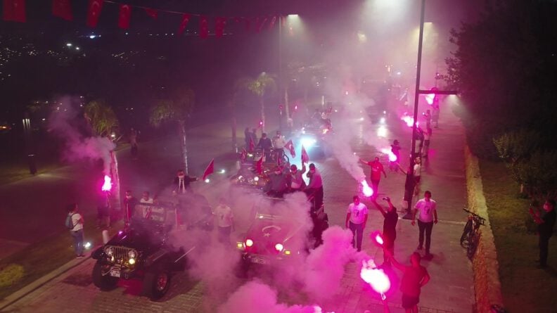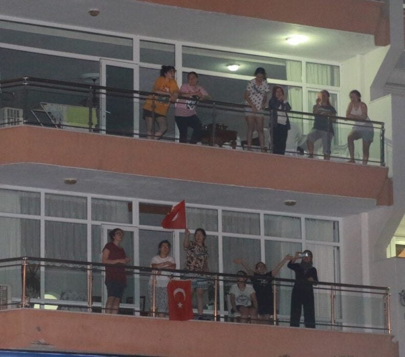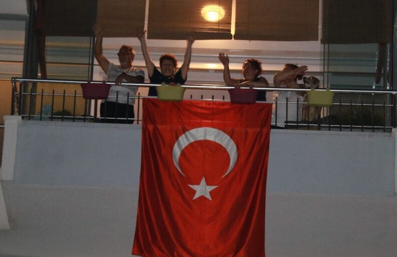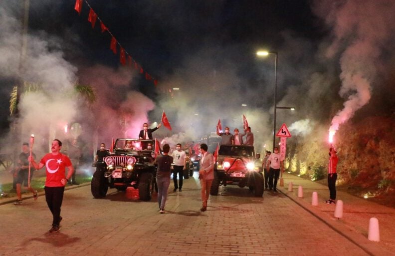 Annesiyle birlikte meydana gelerek kutlamaya destek veren Necat Alioğlu, “Pandemi sürecinde bundan daha iyi bir etkinlik olamazdı. Güzel geçit oldu. Bando ekipleri de çok güzeldi. Biz burada oturuyoruz, etkinliği duyunca geldik. Beraber toplandık. Elimizden geldiğince yardımcı olmaya çalıştık. Kaldırımlardan destek verdik” diye konuştu.