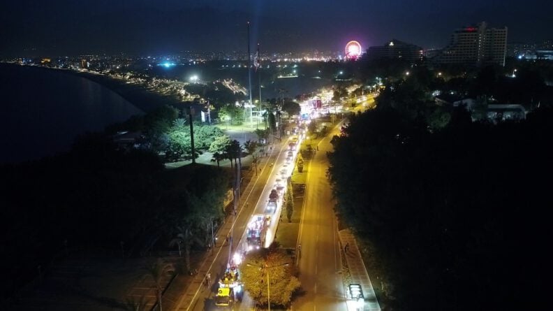 Antalya Büyükşehir Belediyesi, bu yıl pandemi nedeniyle evlerde kutlanan 19 Mayıs Atatürk’ü Anma, Gençlik ve Spor Bayramı’nda Konyaaltı Varyant’ta fener alayı düzenledi. 2012 yılından bu yana geleneksel olarak binlerce vatandaşın katılımıyla düzenlenen alay, bu yıl korona virüs nedeniyle sadece araçlardan oluştu. Konvoya Büyükşehir Belediye Başkanı Muhittin Böcek, CHP Antalya İl Başkanı Nusret Bayar, Antalya Milletvekilleri Rafet Zeybek ve Cavit Arı, Muratpaşa Belediye Başkanı Ümit Uysal, Konyaaltı Belediye Başkanı Semih Esen, Döşemealtı Belediye Başkanı Turgay Genç, partililer, sporcular ve belediye görevlileri katıldı. Konvoya vatandaşlar ve sivil araçlar katılamadı. Saat 20.30’da varyanttan başlayan konvoy, Cumhuriyet Meydanı’na doğru devam etti. Başkan Böcek, üstü açık araca çıkarak bayrakla vatandaşları selamladı. Böcek’in önünde yer alan sporcular ise, ellerindeki meşaleler ile tempolu şekilde yürüdü. Konvoya katılamayan bazı vatandaşlar balkon ve pencerelerine çıkarak kutlamaya destek verirken, bazı vatandaşlar ise yol kenarlarında bayrak tutarak destek verdi.