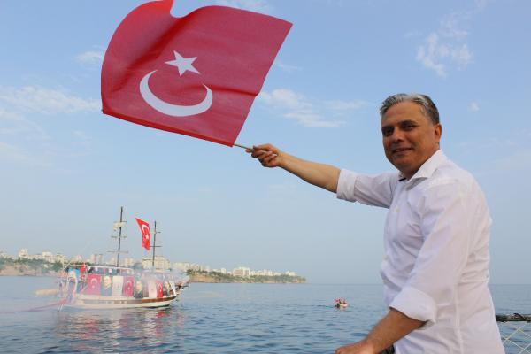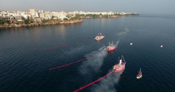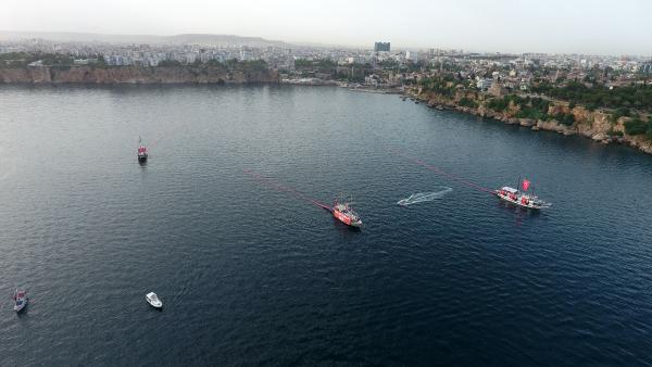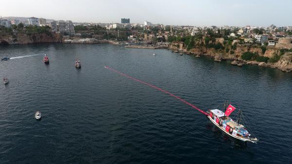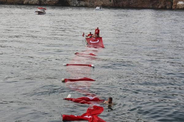 Antalya’da denizde 100’er metrelik Türk bayrağı açıldı/ Ek fotoğraflar