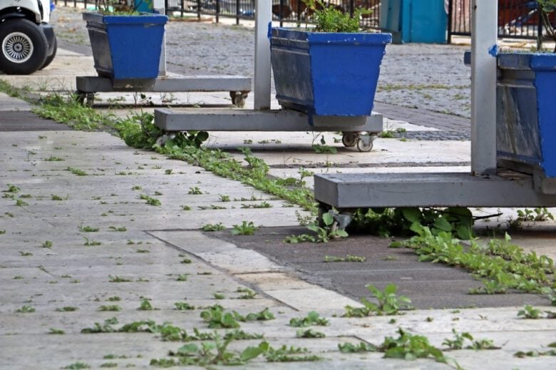 Semtin kıyı kesimindeki restoran, kafe, bar gibi işletmelerin önünde de büyük otların çıktığı gözlendi.