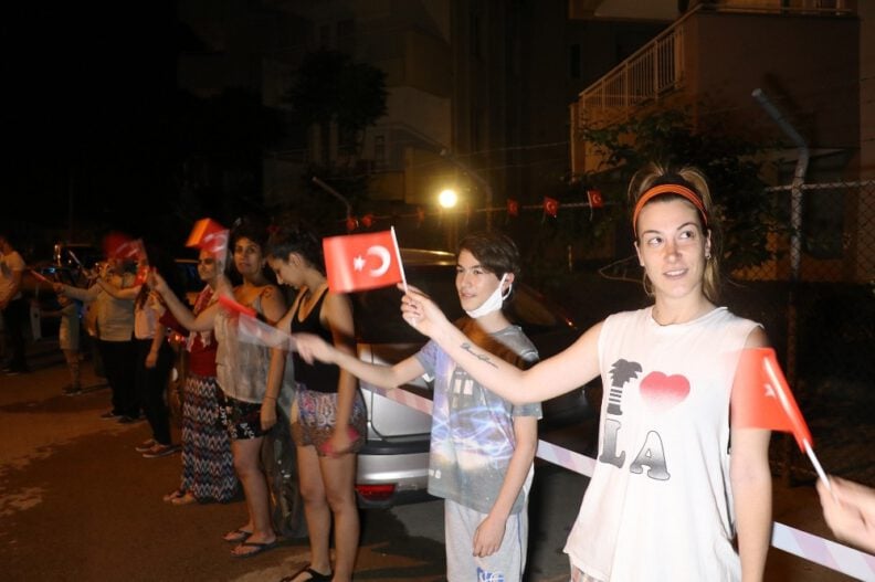 Antalya’nın Muratpaşa ilçesinde site sakinleri, 19 Mayıs’ı bir dakikalık saygı duruşu ve İstiklal Marşı’nı okuyarak kutladı. Günün anlam ve önemine ilişkin marşların söylendiği kutlamada, meşaleler yakılıp konfetiler patlatıldı.