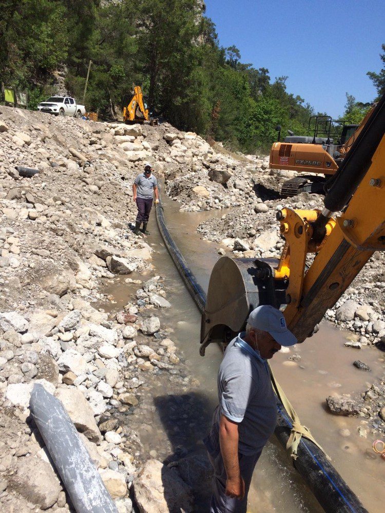 Antalya Büyükşehir Belediyesi Antalya Su ve Atıksu İdaresi Genel Müdürlüğü (ASAT) Kemer’de sorunlu içme suyu hattını yeniledi.