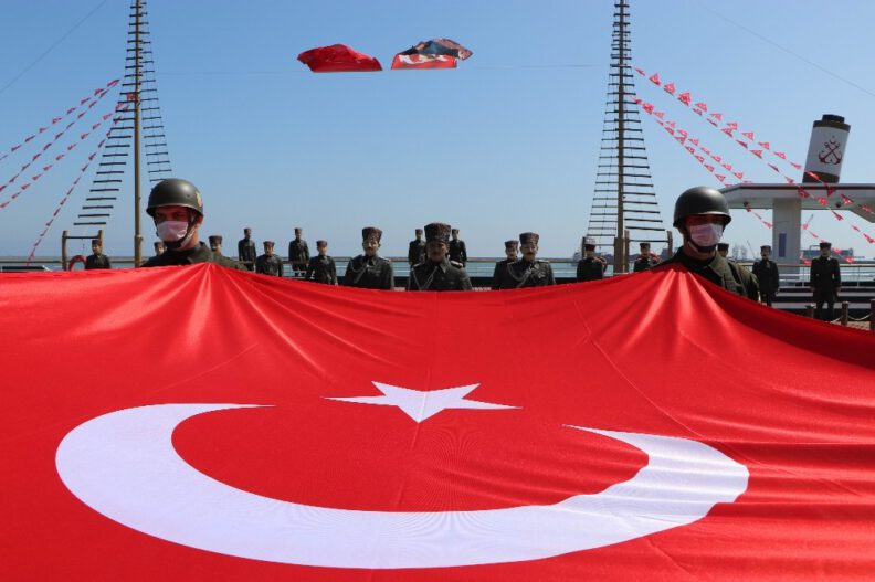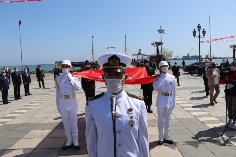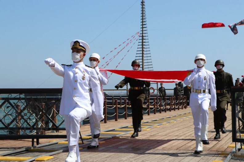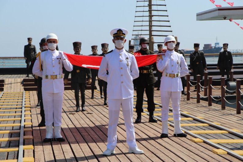 19 Mayıs 1919’da Atatürk’ün Kurtuluş Mücadelesi’ni başlatmak üzere Samsun’a ilk adımı attığı yer olan Tütün İskelesi’nde Atatürk’ün karaya çıkışını temsil eden Türk bayrağı, askerler tarafından karaya çıkarıldı.