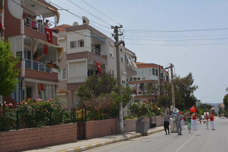 Bando takımının gösterimlerine evlerinin balkonlarına çıkarak ellerinde Türk Bayrakları ile eşlik eden vatandaşlar, sıcak havaya rağmen coşkulu ve renkli görüntüler oluşturdu.