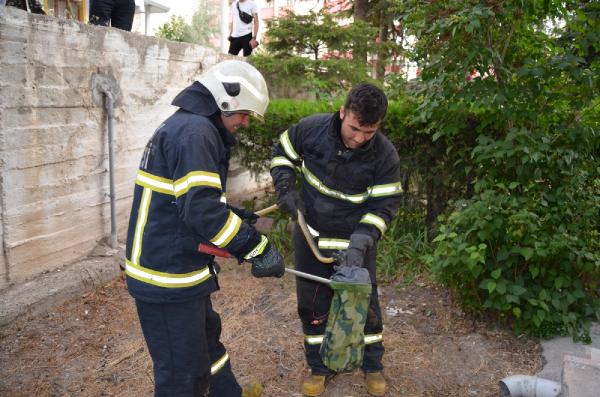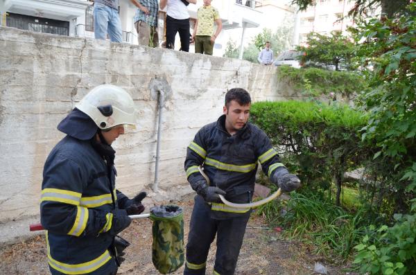 Aksaray’da, bir sitenin bahçesinde görülen yaklaşık 1,5 metre uzunluğundaki yılan, itfaiye ekiplerince yakalanarak doğaya bırakıldı.