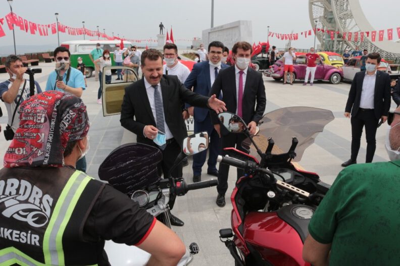 Balıkesir Büyükşehir Belediye Başkanı Yücel Yılmaz 19 Mayıs Atatürk’ü Anma Gençlik ve Spor Bayramı nedeniyle bu tür etkinliği gerçekleştirdiklerini ifade ederek, kutlamaların gün boyu değişik ilçelerde devam edeceğini söyledi. Yılmaz, “Herkesin 19 Mayıs Atatürk’ü Anma Gençlik ve Spor Bayramı’nı kutluyorum. Sabah 10.30’da 20 ilçemizden 20 gencimiz, milli atlet ve sporcularımızla, İl Gençlik ve Spor Müdürümüz ve Milli Eğitim Müdürümüzle beraber telekonferans yaptık. Çok güzel, anlamlı bir kutlama oldu. Şimdi Çamlık Tepesi’ndeyiz. Burada 266 vosvos ve klasik araçlar kulübümüz ile motorcular kulübümüzle beraber Balıkesir’in simgesi haline gelmiş Çamlık Tepesi’nden görüntü veriyoruz. Bugün inşallah 20 ilçemizde çok farklı etkinliklerimiz var. Bu klasik araçlarla beraber hem Balıkesir merkezinde hem de Bandırma ilçemizde turlar atacağız, gençlerimizin bayramını kutlayacağız, cumhuriyetimize sahip çıktıkları için her bireyimize tebriklerimizi ileteceğiz” diye konuştu.