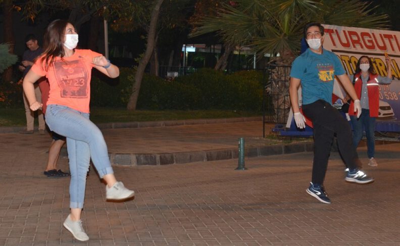 Manisa’nın Turgutlu ilçesinde 19 Mayıs Atatürk’ü Anma, Gençlik ve Spor Bayramı kapsamında “Evde Kal Hareketsiz Kalma”etkinliği kapsamında Turgutlu Gençlik ve Spor İlçe Müdürlüğü görevlileri Atatürk Bulvarında vatandaşları balkona davet ederek şarkılar eşliğinde egzersiz yaptırdı.
