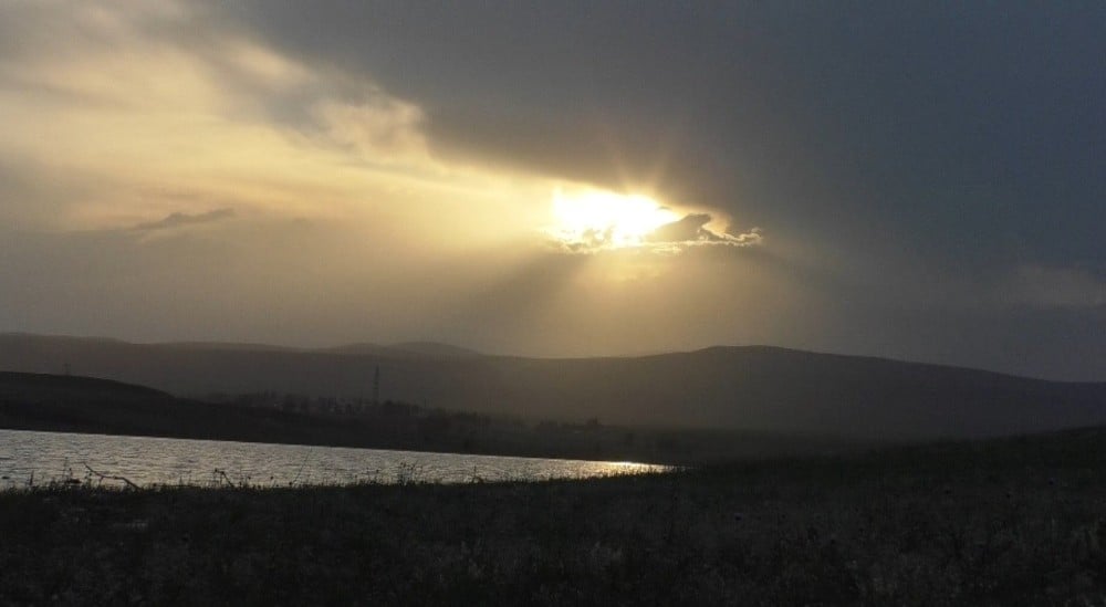 Kars-Susuz-Ardahan karayolu üzerinde bulunan Kars Baraj Gölü’nde kapakların kapatılmasıyla birlikte eksi Çamçavuş Köyü yeniden sular altında kaldı. Köyden geriye sadece cami minaresi kalırken, gün batımında baraj gölünde kartpostallık görüntüler ortaya çıktı.