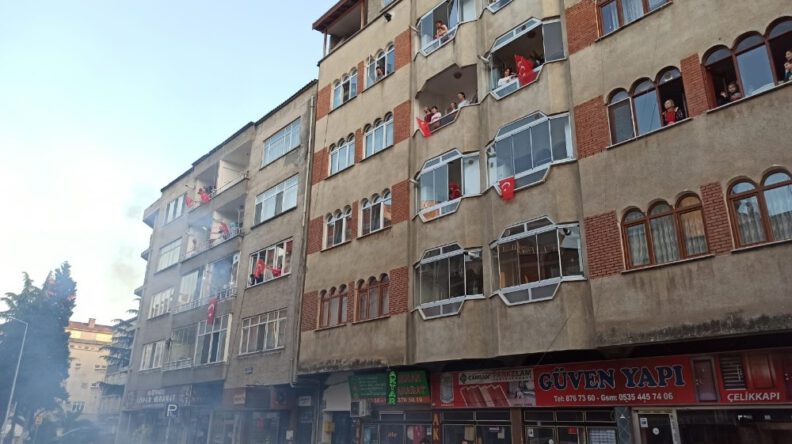 Cumhurbaşkanı Recep Tayyip Erdoğan’ın talimatıyla 19 Mayıs Atatürk’ü Anma, Gençlik ve Spor Bayramı’nın tüm ülke genelinde saat 19.19’da evlerde kutlanması kararı üzerine Samsunlular ellerinde bayraklarla camlara çıktı.