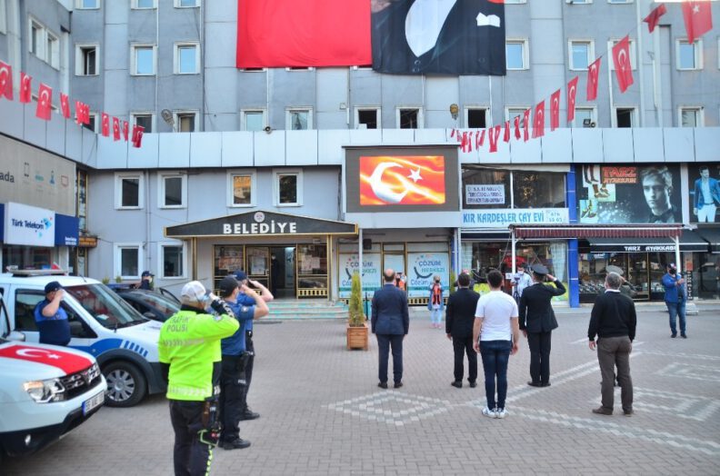 Korona virüs salgını tedbirleri kapsamında sokağa çıkma yasağının devam ettiği Samsun’da ve tüm Türkiye’de 19 Mayıs Atatürk’ü Anma, Gençlik ve Spor Bayramı’nı vatandaşlar balkon ve camlarda İstiklal Marşı’nın söyleyerek kutladı.