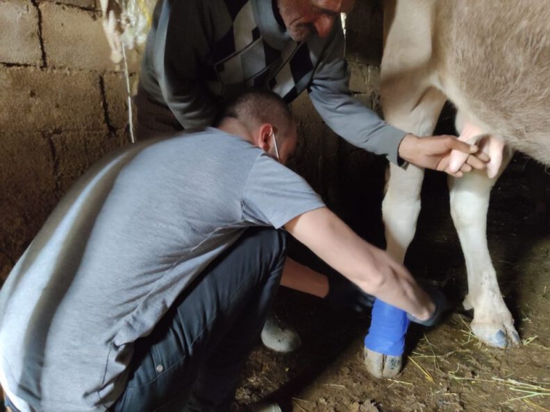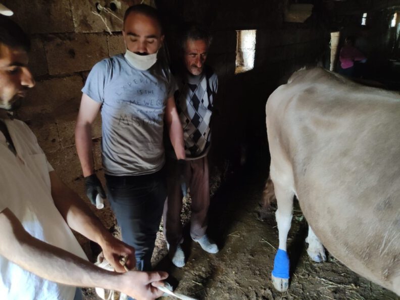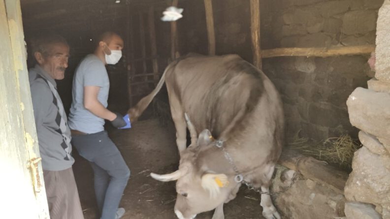 Yüksekova Belediyesinde görevli veteriner hekim Hekim Kaçan, hayvanı muayene ederek sağlık durumunun iyi olduğunu belirtti.