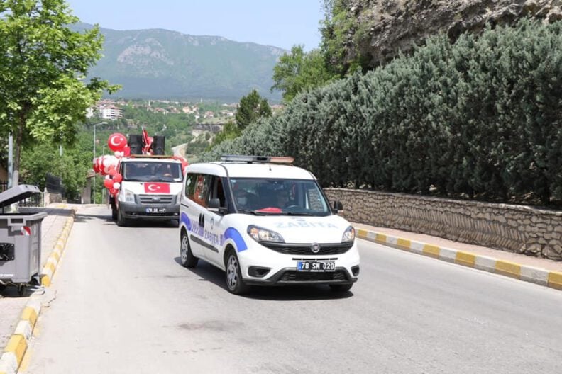 Safranbolu Belediye Başkanı Elif Köse, korona virüs (Covid-19) salgını nedeniyle tedbirler çerçevesinde kutlanan 19 Mayıs Atatürk’ü Anma, Gençlik ve Spor Bayramı dolayısıyla kamyonet kasasına çıkarak mahalle mahalle gezip vatandaşların bayramını kutladı.