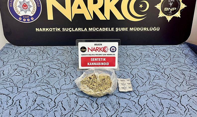 Gölpazarı İlçe Emniyet Amirliği Narkotik Suçlarla Mücadele Şube Müdürlüğünce durdurulan araç içerisinde, 8 adet sentetik ecza (Neurontin) maddesi ele geçirildi. Konuyla ilgili yakalanan 3 şahıstan birinin üzerinden de 52,19 gram sentetik kannabinoid (Bonzai) maddesi, 1 adet 9 mm tabanca ele geçirildi.