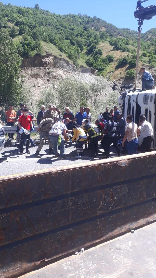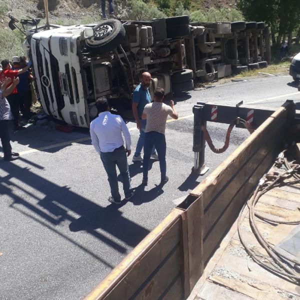 Özcan ÇİRİŞ/BİTLİS, (DHA)- BİTLİS’in Buzlupınar mevkisinde, virajı alamayan TIR devrildi. Kazada, sürücü ile beraberinde bulunan 2 kişi yaralandı.