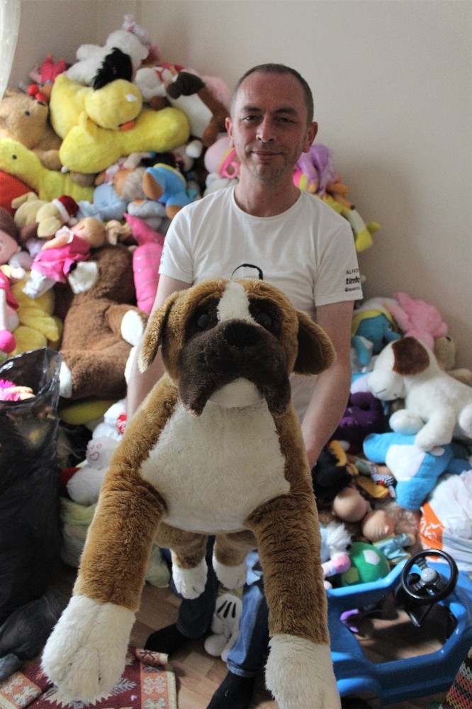 Bu projeye 3 yıl önce başladığını ifade eden Muammer Kavazoğlu, “Bir gün sokakta yürürken çöp konteynerinin yanına bırakılmış oyuncaklar gördüm. Bu oyuncakları alıp evimde tamir ettim. Tamir ettiğim bu oyuncakları çevremdeki çocuklara hediye ettim. Bu çocukların gözlerindeki mutluluk beni çok mutlu etti. Bu işi devam ettirmeliyim diye karar verdim. Yaptığım iş duyulunca Türkiye’nin her yerinden ve dünyanın farklı ülkelerinden bana kullanılmayan bozuk oyuncakları göndermeye başladılar bende bu oyuncakları tamir edip ihtiyacı olanlara göndermeye başladım. Bu işte bana annemde yardım ediyor. Oda pelüş oyuncakları dikip tamir ediyor. Bu zamana kadar 11 bin oyuncağı tamir edip çocuklara gönderdim. Depomda yüz binlerce oyuncak çocuklara ulaşmayı bekliyor. Tek sıkıntım sponsorum olmaması bir sponsor olursa işlerimiz daha hızlı yürüyecek. Ben bu işten hiç bir kazanç sağlamıyorum. Benim bütçem de çok iyi değil bir sponsor bulabilirsek işler daha hızlı yürüyecek daha çok çocuğu sevindireceğiz” dedi.