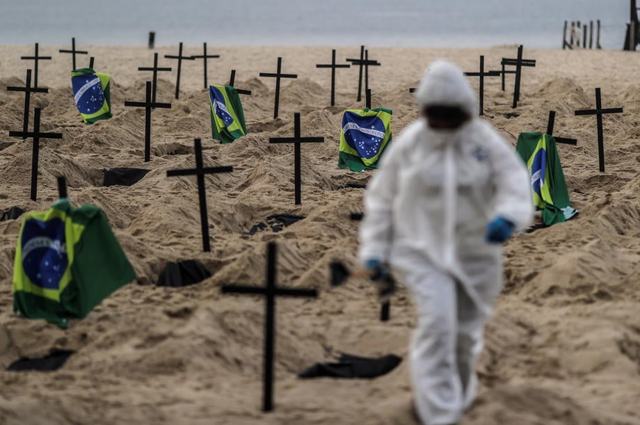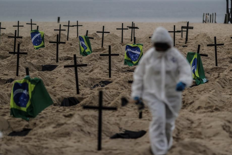 Koronavirüs salgınında Latin Amerika’nın merkez üssü konumunda bulunan Brezilya’da bilanço ağırlaşıyor. Devlet Başkanı Jair Bolsonaro’nun virüsü umursamaması ve salgınla mücadele kapsamında kilitlenmelere karşı çıkması nedeniyle kendisine yöneltilen eleştiriler artıyor. Ülkenin ünlü Copacabana plajında hükümetin salgına yönelik mücadelesini protesto etmek amacıyla aktivistler tarafından sembolik mezarlar kazıldı. Kazılan 100 sembolik mezara salgında hayatını kaybeden 40 binden fazla kişi için temsili siyah haçlar dikildi.