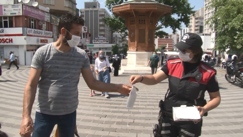 Dünyayı yakıp kavuran korona virüs salgınıyla ilgili mücadele sürüyor. Normalleşme süresiyle birlikte bir çok kişi kuralları ihlal edince rakamlar hafif de olsa artmaya başladı. Bursa İl Emniyet Müdürü Tacettin Aslan’ın talimatı ile Bursa genelinde polis ekiplerini denetimlerini sıklaştırdı. Ekipler, maskesiz sokağa çıkanlara ceza kesti. Bursa genelinde en işlek caddelerde ve meydanlarda görev yapan polis ekipleri maskesiz dolaşanları maske takma konusunda uyarırken, maskesi olmayanlara ise maske dağıttı. Ayrıca megafonlarla sık sık vatandaşları maske takmaları ve sosyal mesafe kurallarına uymaları konusunda uyarılarda bulundu.