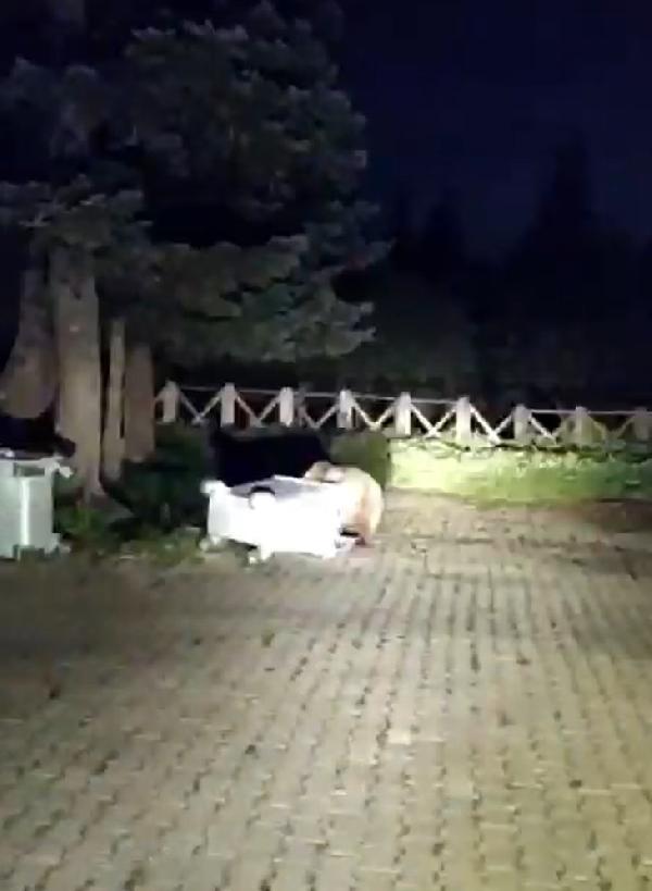 Koronavirüs pandemisi nedeniyle ziyaretçi sayısının düştüğü Uludağ’da, ayılar da yiyecek bulmakta zorlanırken, gece saat 02.00 sıralarında bir ayı dağın eteklerine kadar indi. Buradaki bir çöp konteynerinde yiyecek arayan ayı, bulduğu yiyecekler ile beslendi. O anlar bir vatandaşın amatör kamerasına yansırken, karnını doyuran ayı daha sonra geldiği yöne geri dönerek gözden uzaklaştı.