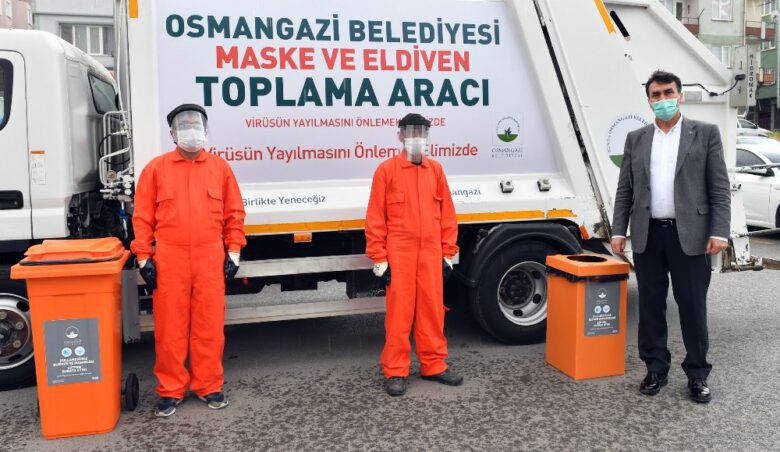 Tüm dünyayı etkisi altına alan korona virüs salgınında vatandaşların ve özellikle sağlık çalışanlarının en önemli tedbir malzemelerinden olan maske ve eldivenlerin, kullanıldıktan sonra toplum sağlığına zarar vermeden toplanması adına Osmangazi Belediyesi örnek bir çalışmaya imza attı. Osmangazi Belediyesi Temizlik İşleri Müdürlüğü, salgın nedeniyle kullanımı artan maske ve eldivenler için atık konteynırları hazırlayarak ilçe genelindeki kamu kurumlarına ve belirli bölgelere yerleştirdi. Kamusal açık ve kapalı alanlar için iki çeşit hazırlanan maske ve eldiven konteynırları, diğer atıklardan ayrı olarak özel bir araçla toplanacak.