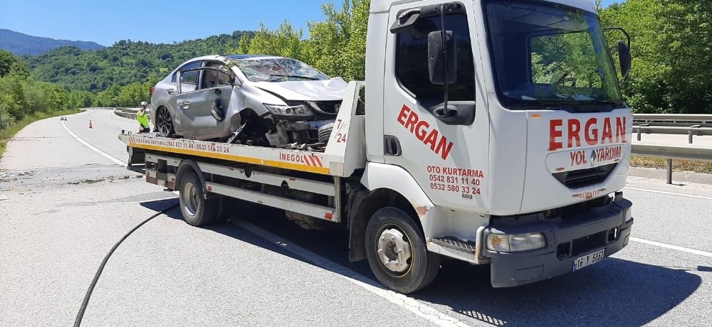 Takla atıp ters vaziyette duran otomobilde sıkışan sürücü ile Mihriban K. (74) olay yerine gelen itfaiye ve vatandaşlar tarafından kurtarıldı. Her iki yaralı olay yerine gelen sağlık ekiplerinin ilk müdahalesinin ardından İnegöl Devlet Hastanesi’ne kaldırıldı. Kaza sonucu hurda olan otomobil ise çekici yardımıyla kaldırıldı. Kazayla ilgili soruşturma ise sürdürülüyor.