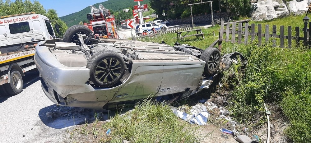 Bursa Ankara yolunda meydana gelen kazada otomobil takla attı, kazada 2 kişi yaralandı.