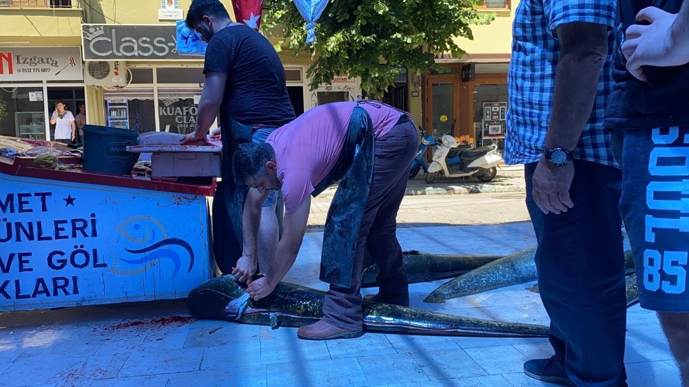İznik Gölü’nde kaçak avcılığın önüne geçilince 30 yıl sonra boyu 2 metreyi bulan balık yakalandı. Vatandaşlar dev balıkla hatıra fotoğrafı çektirdi.