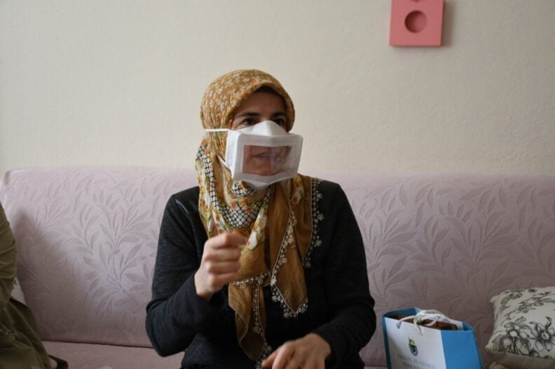 İhtiyaca göre maske üretimi yapıldığını vurgulayan Başkan Taban, “Bunları yaparken gerek vatandaşlarımızdan gelen bildirimler gerekse de meslek edindirme kurslarımızdaki arkadaşlarımızın çabalarıyla bir yandan ihtiyaçları analiz ediyoruz. Özellikle işitme engellilerimizin bir sorununu tespit ettik. İşitme engellilerimiz bu noktada işaret dilini kullanıyorlar ancak dudak okuma da önemli bir detay. Dudak okuma olmadığında iletişim eksik kalmış oluyor. Bundan dolayı meslek kurslarımızda kıymetli hocalarımız bu işitme engelliler için özel bir maske üretti. Bugün de engelli ailelerimizi evlerinde ziyaret edip kendilerine maskelerini takdim ediyoruz. Özellikle engelliler haftasında bunun olmasının da çok daha anlamlı olduğunu düşünüyorum. Gerçekten tüm bireyleri önemsiyoruz ama engelli vatandaşlarımızı ayrıca önemsiyoruz ve onlar için neler yapabiliriz şekilden tüm çalışmalarımızı sorguluyoruz. İnovasyon, yeni bir bakış ya da onların her türlü ihtiyaçlarını görebilmek adına bu empatiyi gerçekleştirmeye devam edeceğiz” açıklamalarında bulundu.